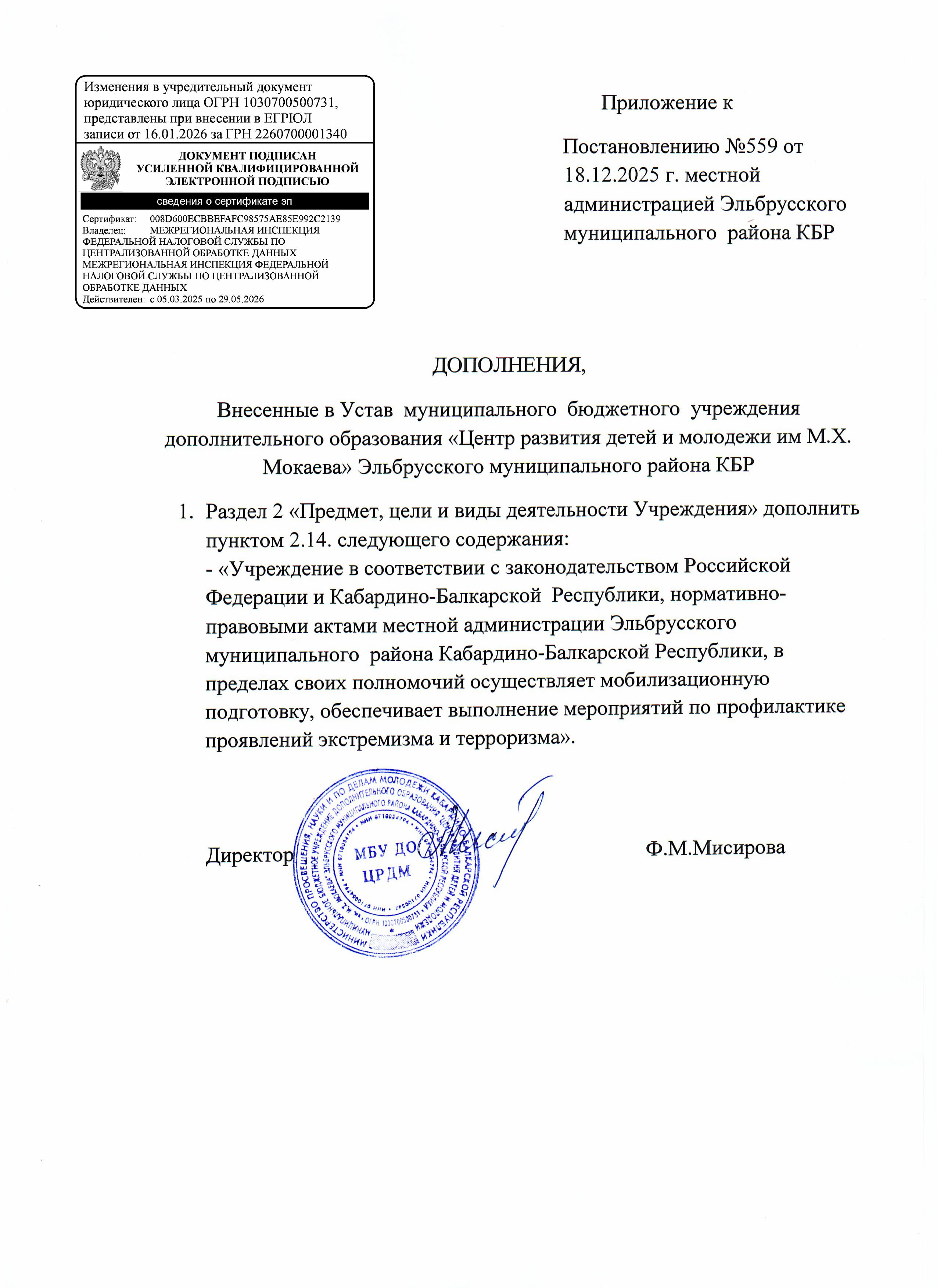 Публичный отчет муниципального бюджетного учреждения дополнительного образования «ЦРТДиЮ им. М.Х. Мокаева» Эльбрусского муниципального района |